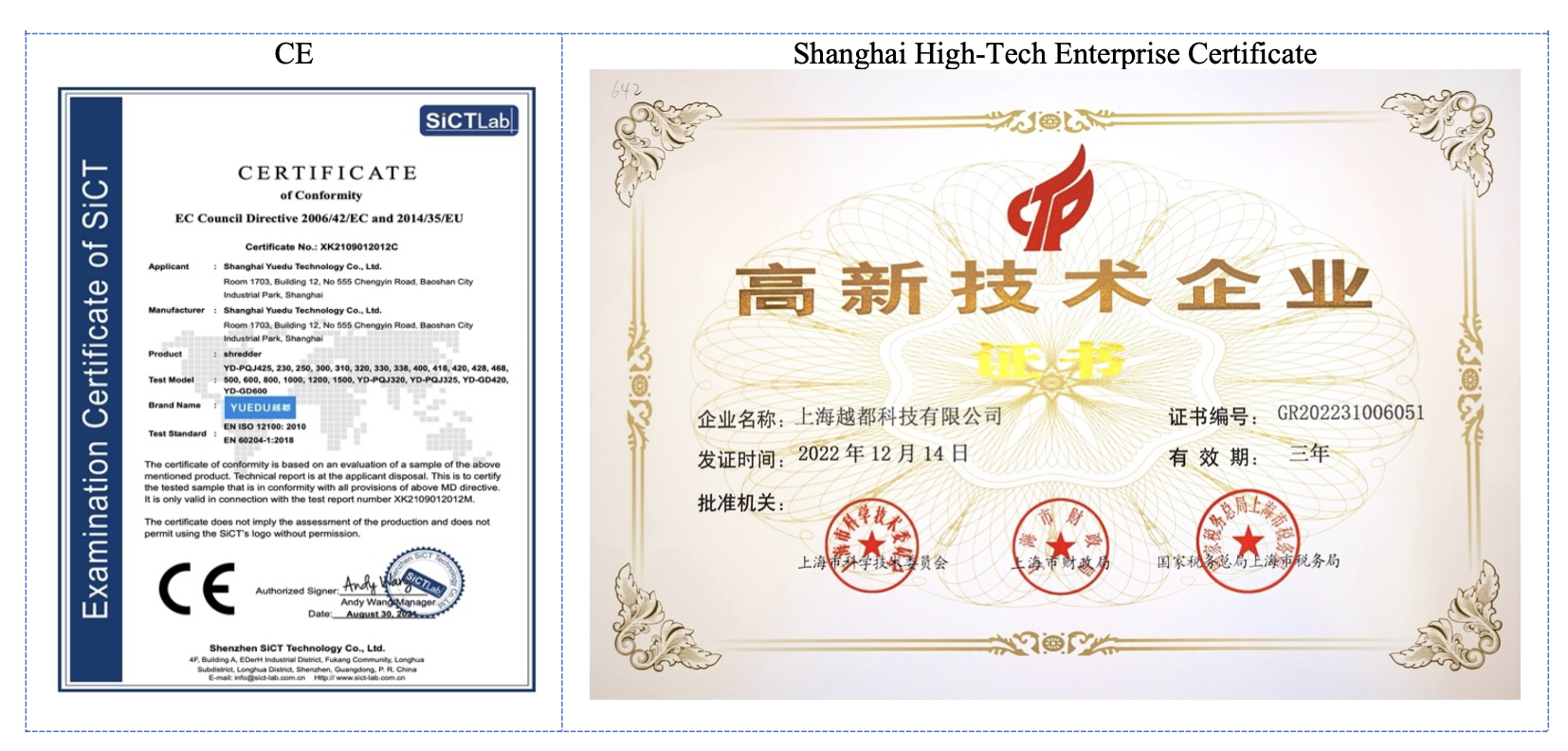 上海越都科技有限公司是一家专注于粉碎与销毁设备研发与制造的高新技术企业,获得上海市高新技术企业认证。